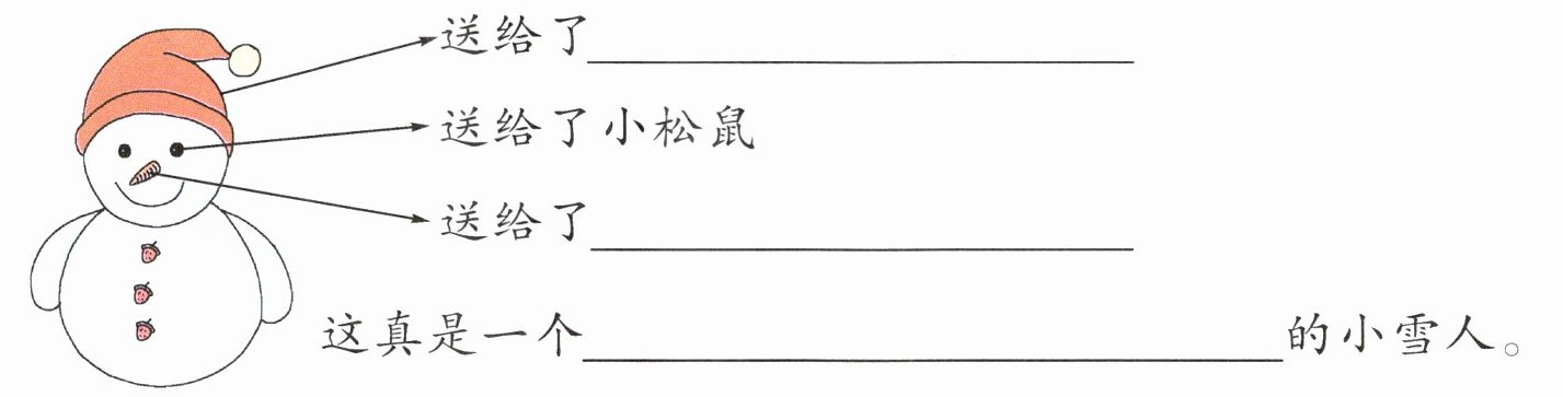 4. 假如小雪人还有三颗草莓纽扣,她还会帮助谁呢?写一写。