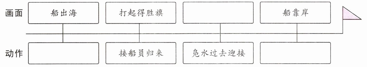 画面:船出海 打起得胜旗 ______ 船靠岸