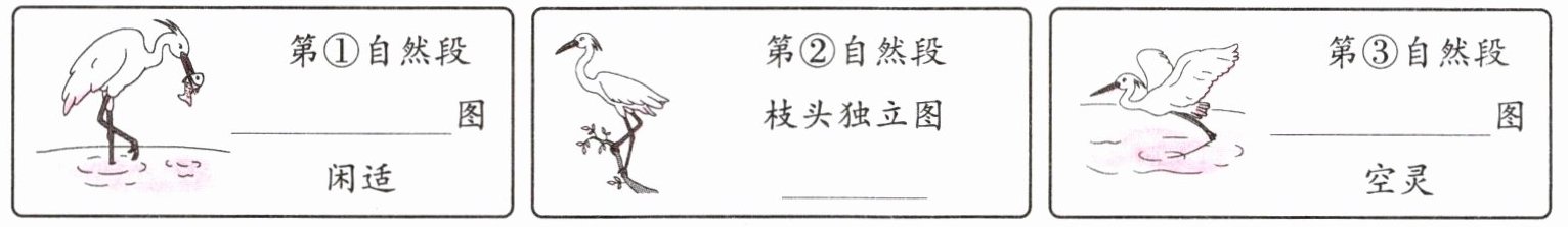 第①自然段 ______图 闲适 第②自然段 枝头独立图 ______ 第③自然段 ______图 空灵