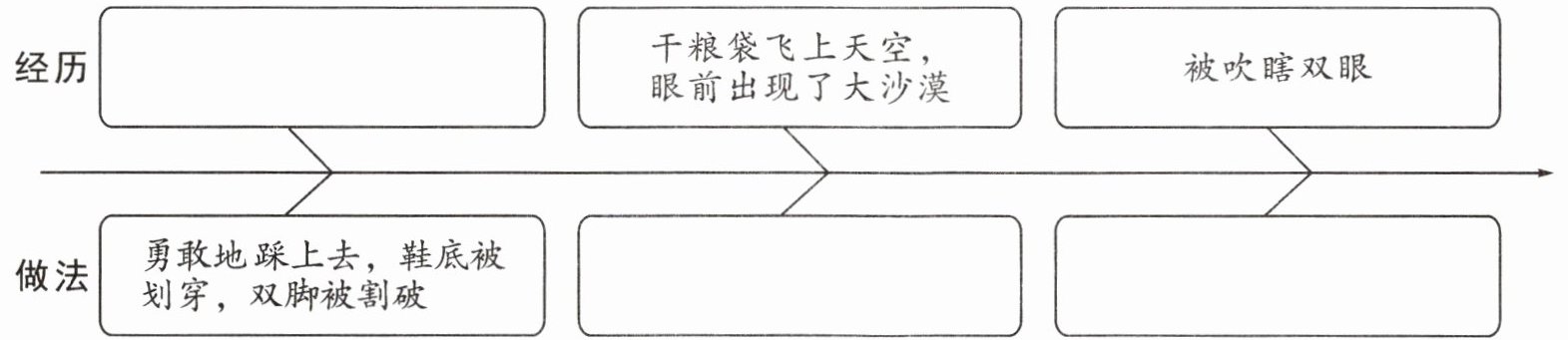 经历 → 干粮袋飞上天空,眼前出现了大沙漠 → 被吹瞎双眼