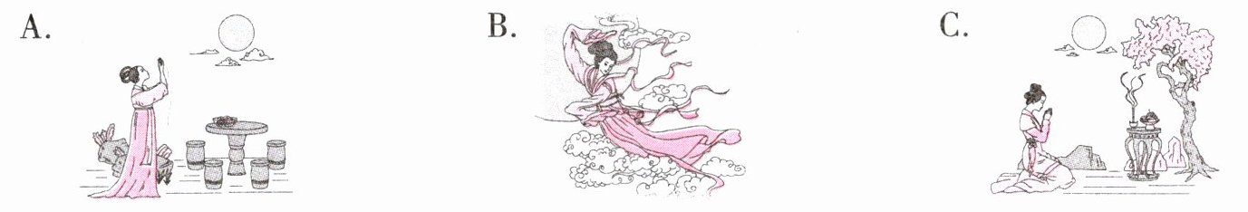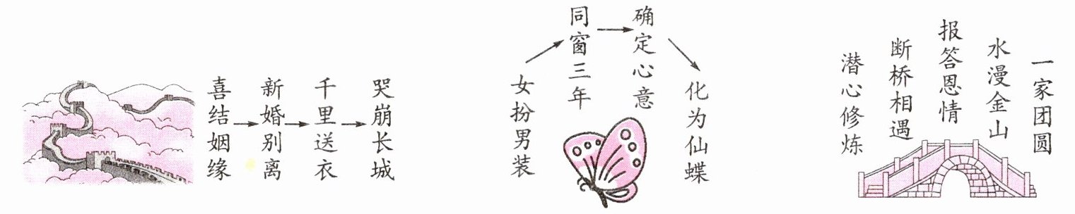 1. 小渐认真阅读了《中国民间故事》并制成阅读卡与同学分享,根据下列情节图,可以猜测小渐读的民间故事依次是《______》《______》《______》。