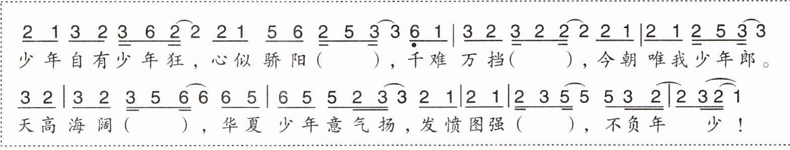 少年自有少年狂,心似骄阳( ),千难万挡( ),今朝唯我少年郎。