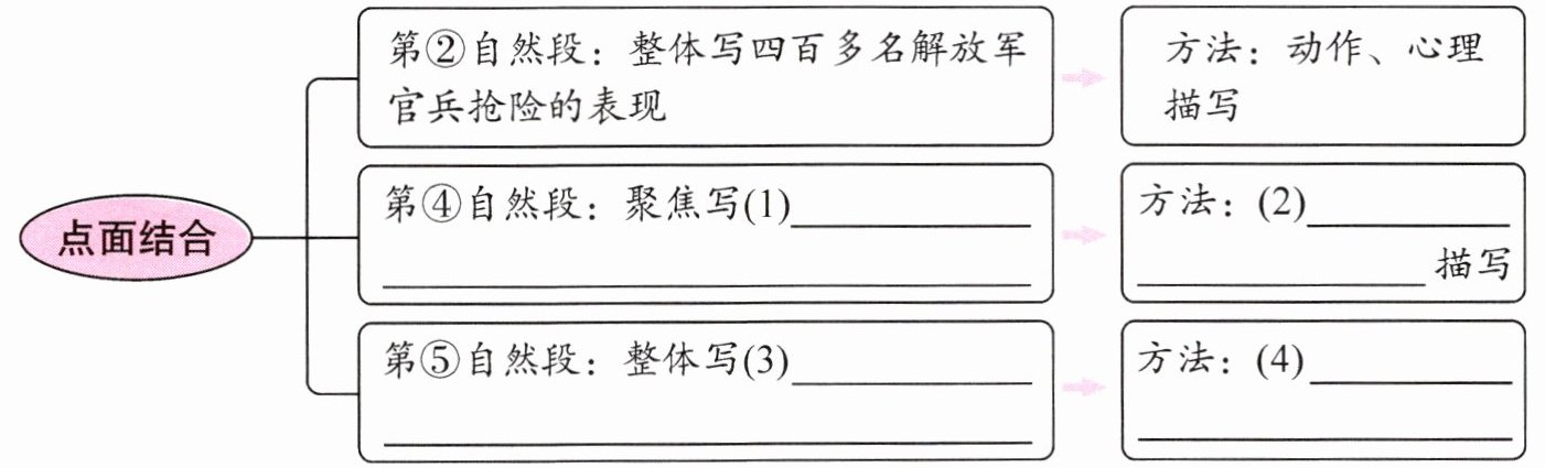 1. [思维导图]选文运用了点面结合的方法进行场面描写,阅读选文,完成练习。