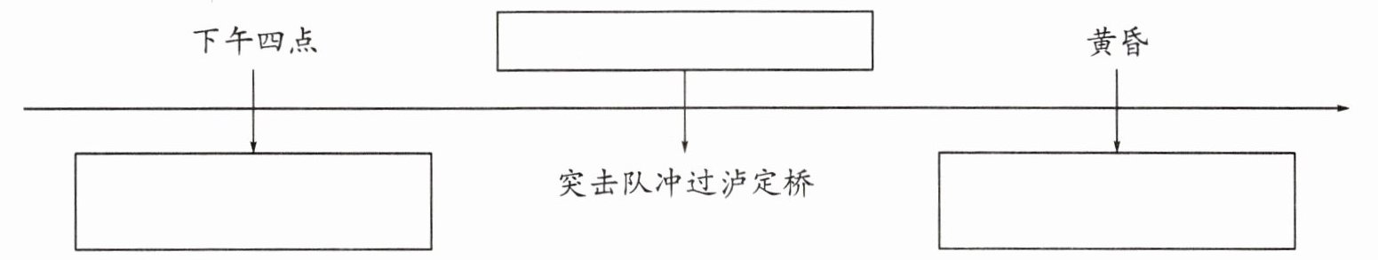 发起总攻 半个小时后 占领泸定城,夺下泸定桥 2. A 3. 面 激烈、焦灼 拿、背、带、冒、攀、冲 冒着枪林弹雨英勇冲锋 英勇无畏、视死如归