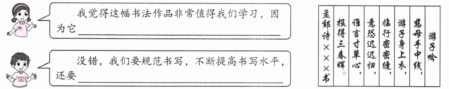 四 参加完市文化中心举办的书法展,几个小朋友的讨论如下: