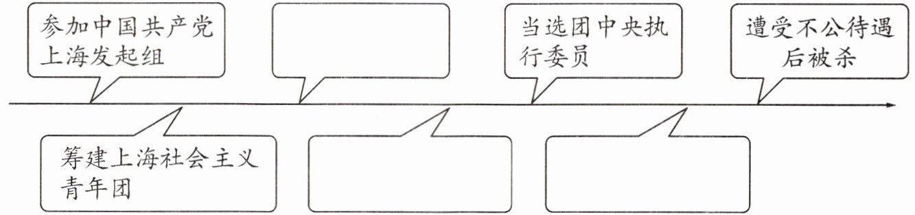 2. [整体感知]同学们想要制作一幅俞秀松烈士的生平事迹图,请你帮他完成这幅图吧!