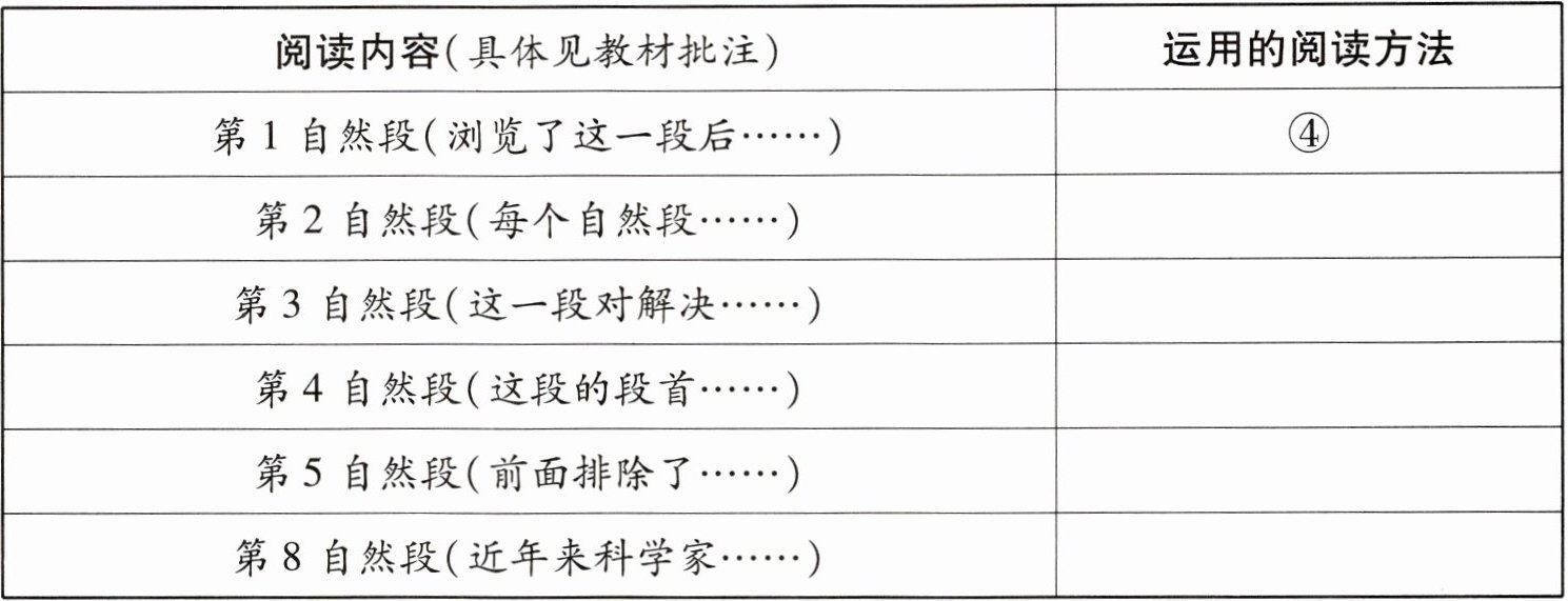 |阅读内容(具体见教材批注)|运用的阅读方法|