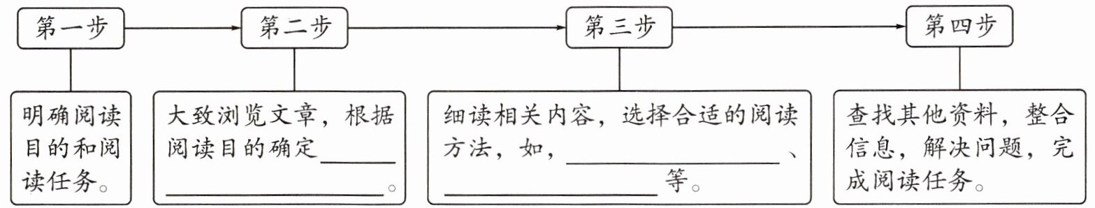 一 参加闯关前,对于如何“有目的地阅读”,小杭整理了基本策略,请帮他补充完整。