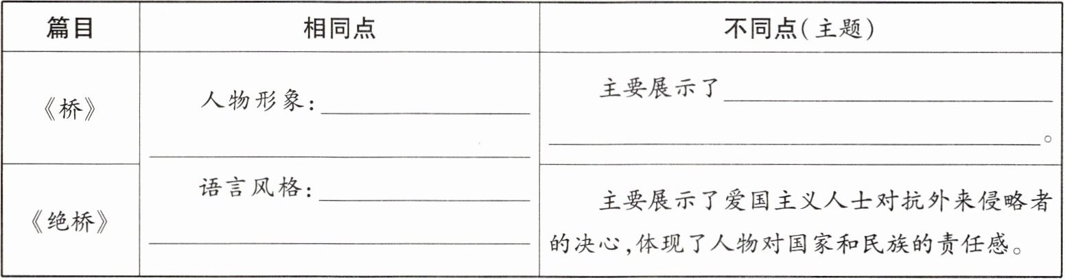 2.[对比鉴赏]课文《桥》和本文都是谈歌的作品,对比两篇文章并简要分析异同。