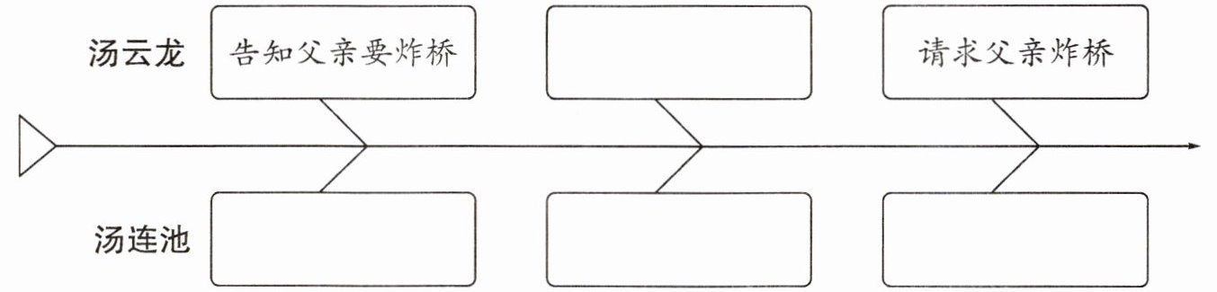 ③汤云龙在桥上布置炸药,几度爆破,那桥竟稳固得坚不可摧。汤云龙仰天长叹……就听到身后一声冷笑,汤云龙猛地回头,见汤连池正在身后怒目而视。
