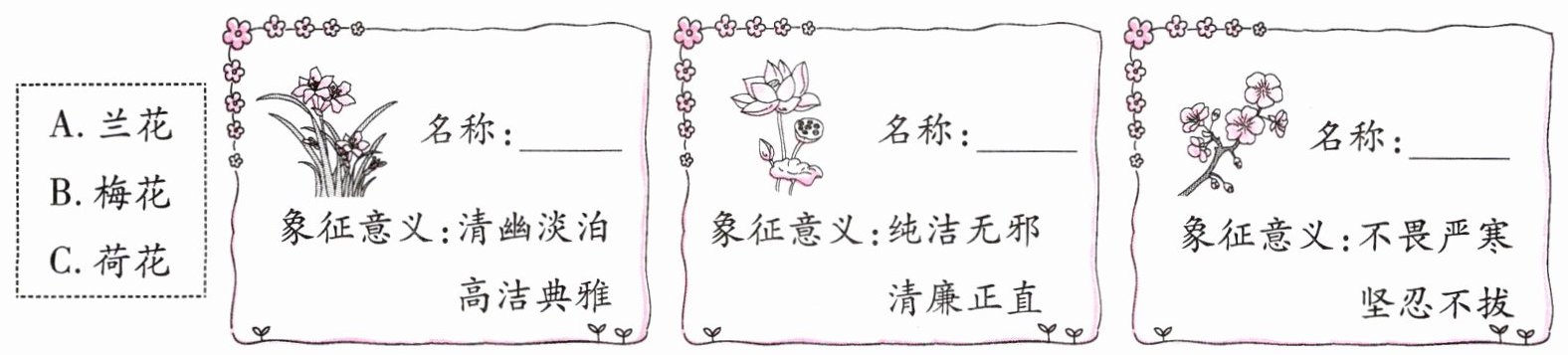 五 在中国传统文化中,不同的花往往具有不同的象征意义。请结合积累选一选。(填序号)
