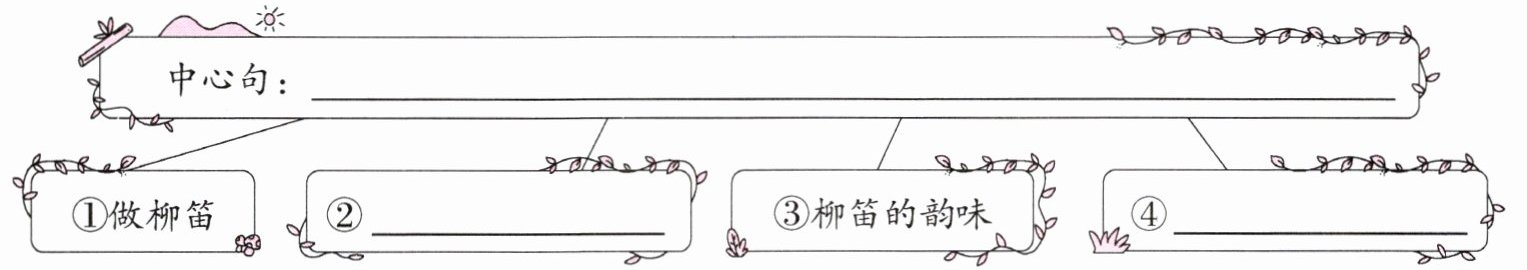 1. [思维导图]作者围绕“吹柳笛”写了哪些内容?仔细阅读短文,完成思维导图。