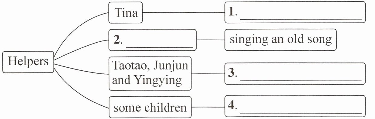 任务一:2 4 3 1 任务二:1. telling funny stories 2. Gao Feng 3. planting trees 4. cleaning the playground