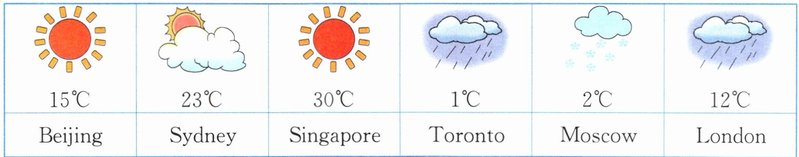 1. T 2. T 3. F 解析 根据表格可知,北京是晴天,伦敦是下雨天,表述与内容不符。故填F。 4. T