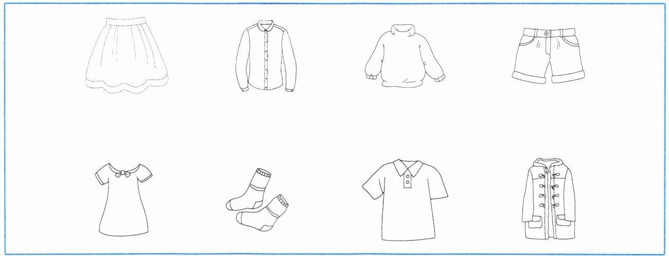 二 阅读短文,圈出短文中出现的衣物图片,并涂上相应的颜色。
