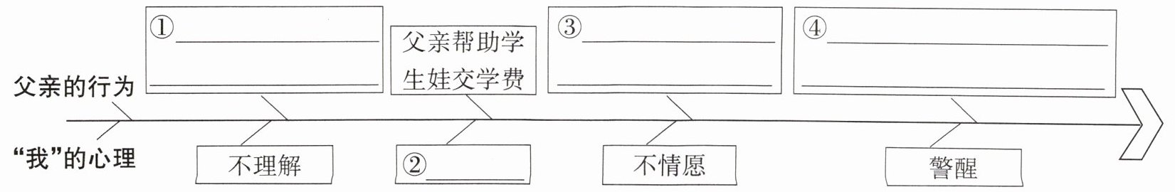 4. ①和父亲去买瓜果时讨价还价 ②惊讶 ③父亲让“我”明早帮他割麦子 ④父亲捡桌上散饭吃并教导“我”