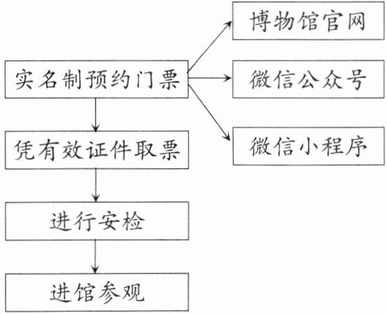 7. 小雯到航空航天博物馆参观学习,下面是博物馆参观流程图,请你用简练的语言介绍参观流程。(50字左右)(3分)