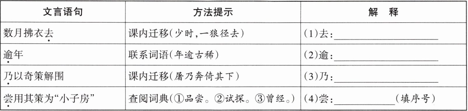 7. 请参考“方法提示”,解释下列句中加点词语。(4分)