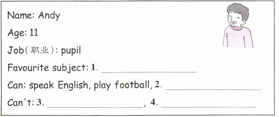 五 听短文,完成 Andy 的个人信息表。(听两遍)