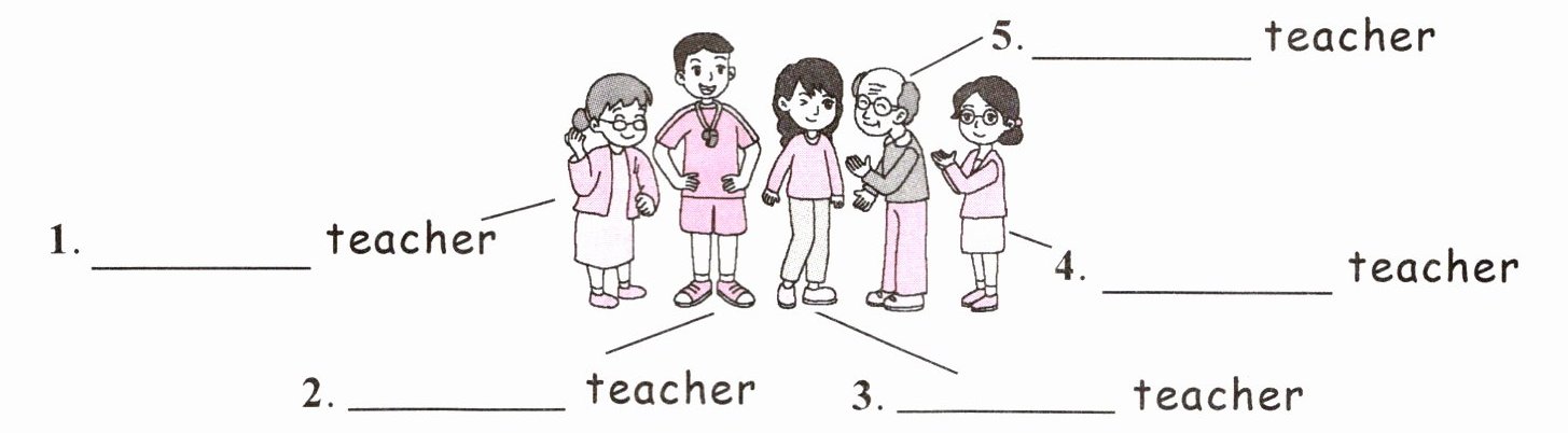 1. English 2. PE 3. music 4. Chinese 5. head