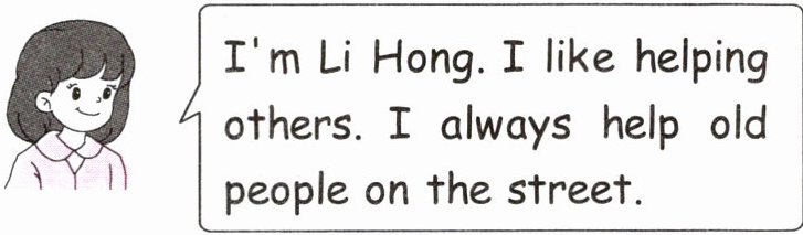 "I'm Li Hong. I like helping others. I always help old people on the street."