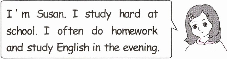 "I'm Susan. I study hard at school. I often do homework and study English in the evening."
