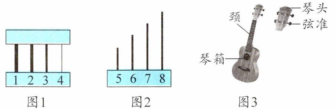 2. 图2研究弦的长短对音高的影响,实验中改变的是弦的长度,拨动四根弦,弦5发出的音______。(填“最高”或“最低”)