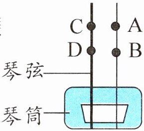 2. 演奏二胡时,手指按在二胡弦的不同位置。如右图,ABCD四个音是连续的,其中最高音是______,最低音是______。