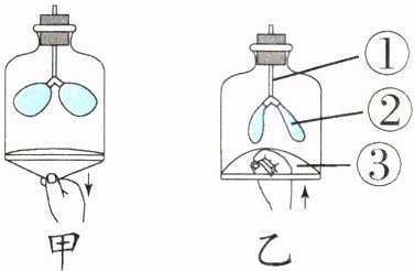 3.甲瓶内的气球鼓了,说明肺变______;瓶内空间变大了,说明胸腔变______。(填“大”或“小”)