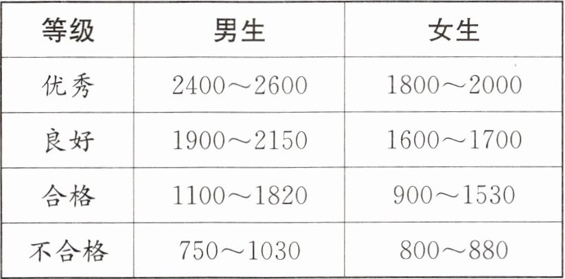 《国家学生体质健康标准(2014年修订)》中有关肺活量的数据