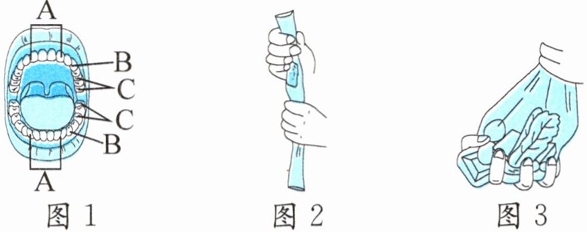 3. 如图3,将塑料袋中装入水、切成小块的馒头和熟蔬菜,反复揉挤这个袋子。这个实验模拟的是______的工作。在它的蠕动工作下,这些食物变成了食糜,说明这个器官具有______(填“输送”或“消化”)食物的作用。