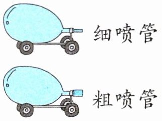4. 有小组成员提出疑问:小车的前进距离和喷管的粗细有没有关系呢?如右图所示,为了解决这个问题,他们继续研究。