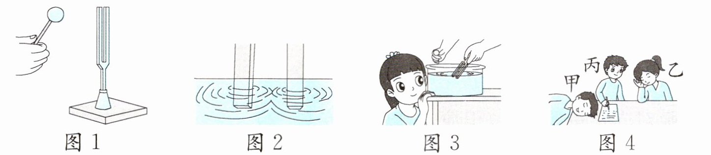 4. 如图4,丙在写字,甲和乙都能听到丙写字的声音,( )听到的声音会更清楚些。