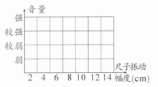 (音量 强 较强 较弱 弱 尺子振动幅度(cm)