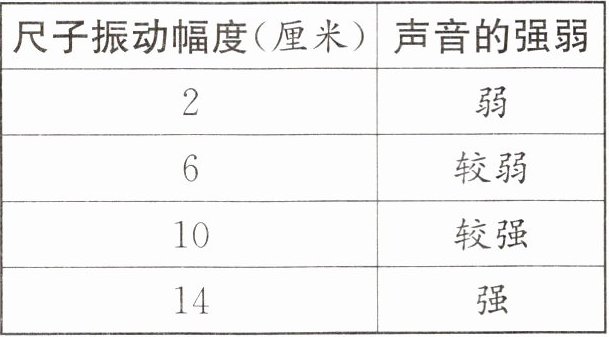 | 尺子振动幅度(厘米) | 声音的强弱 |