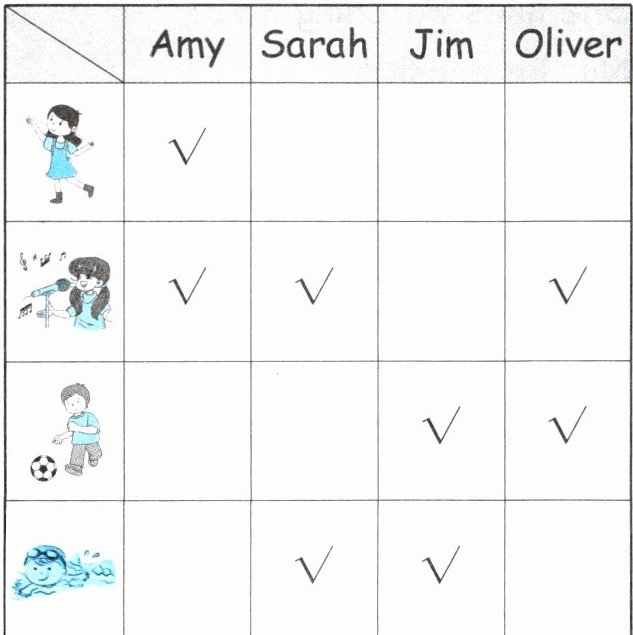 - Read and write.根据表格信息,完成兴趣爱好统计。