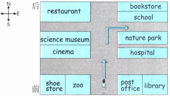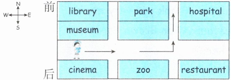 - Look, read and write. Lele 想步行去医院看望生病的好朋友 Mike。根据下面的路线图提示,完成描述路线的短文。