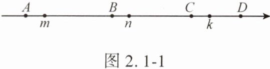 *9. 有理数 $m, n, k$ 在数轴上的对应点的位置如图 2.1 - 1 所示. 若 $m + n < 0, n + k > 0$,则 $A, B, C, D$ 四个点中可能是原点的是(