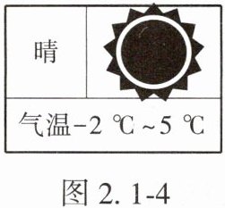 1. 图 2.1 - 4 是某地某日的天气预报,该天最高气温比最低气温高(