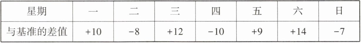 |与基准的差值|+10|-8|+12|-10|+9|+14|-7|