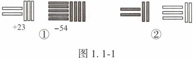 *8. 魏晋时期数学家刘徽在为《九章算术》作注时,用不同颜色的算筹(小棍形状的记数工具)分别表示正数和负数.图1.1-1中用白色算筹表示正数,灰色算筹表示负数,图1.1-1①表示的两个数是+23和-54,则图1.1-1②表示的两个数是