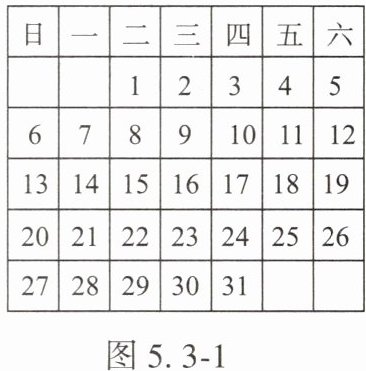 2. 图5.3 - 1是某年3月的月历,用一正方形框在表中任意框住4个数.能否用正方形框框出这样的4个数,它们的和等于92? 若能,则求出这四个数;若不能,请说明理由.