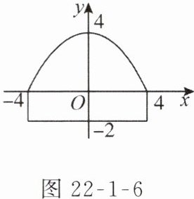 15. (选做题)如图 $ 22 - 1 - 6 $,隧道的截面由抛物线和矩形构成,矩形的长是 $ 8 \mathrm { \ m } $,宽是 $ 2 \mathrm { \ m } $,抛物线可用 $ y = - \frac { 1 } { 4 } x ^ { 2 } + 4 $ 表示,已知一辆货运卡车高 $ 4 \mathrm { \ m } $、宽 $ 2 \mathrm { \ m } $。
