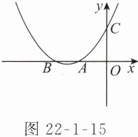 5. 如图 22 - 1 - 15,抛物线 $ y = ax^{2} + bx + c $ 与 $ x $ 轴的交点为 $ A $,$ B $($ B $ 在 $ A $ 的左侧),与 $ y $ 轴的交点为 $ C $,$ OA = OC $,则下列关系式正确的是(