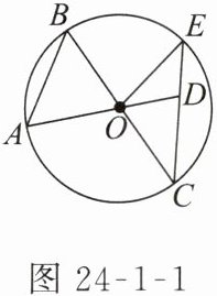 1. 如图 24-1-1,$\odot O中的点A$,$O$,$D以及点B$,$O$,$C$分别在不同的两条直线上,则图中弦的条数为(