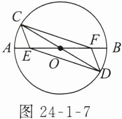 14. 如图 24-1-7,在$\odot O$中,$AB$,$CD为\odot O$的两条直径,$AE = BF$. 求证:四边形$CEDF$是平行四边形.