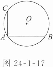 16. 如图 24 - 1 - 17,$\odot O的弦AB垂直AC于点A$,$AB = 6cm$,$AC = 4cm$,求$\odot O$的半径。
