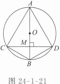 4. 如图 24-1-21,$AB是\odot O$的直径,弦$CD\perp AB$,垂足为点$M$.下列结论不成立的是(