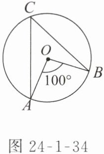 7. 如图 24-1-34,已知圆心角$∠AOB = 100°$,则圆周角$∠ACB$的度数为