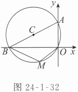 5. 如图 24-1-32,⊙C 过原点,且与两坐标轴分别交于点 A、点 B,点 A 的坐标为$(0,3)$,M 是第三象限内$\overset{\frown}{OB}$上一点,$∠BMO = 120°$,则⊙C 的半径为(